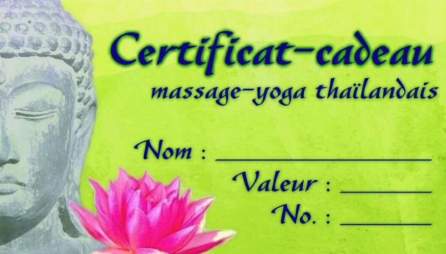 En cette période des fêtes, un massage-yoga thaïlandais est un merveilleux cadeau à offrir! Il est maintenant possible de vous procurer un certificat-cadeau.